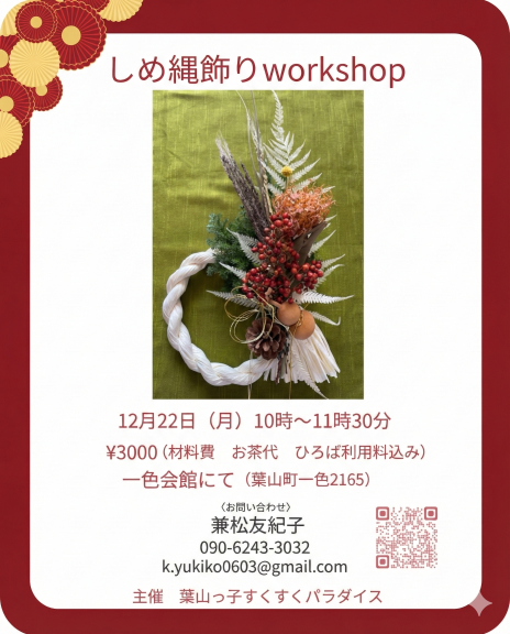 ¥3000(材料費 お茶代 ひろば利用料込み)